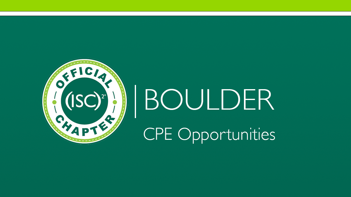 - Register: https://www.meetup.com/isc2-boulder-chapter-group/